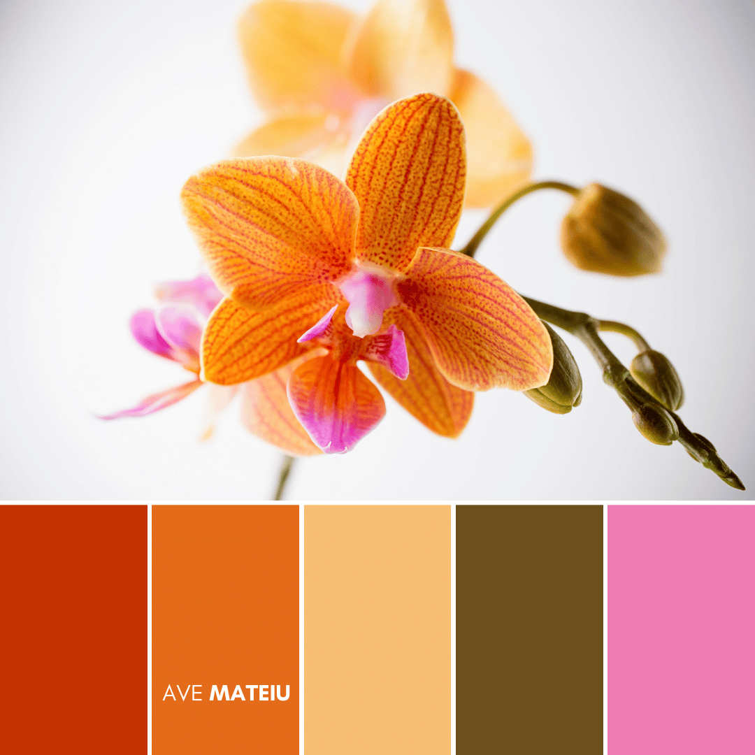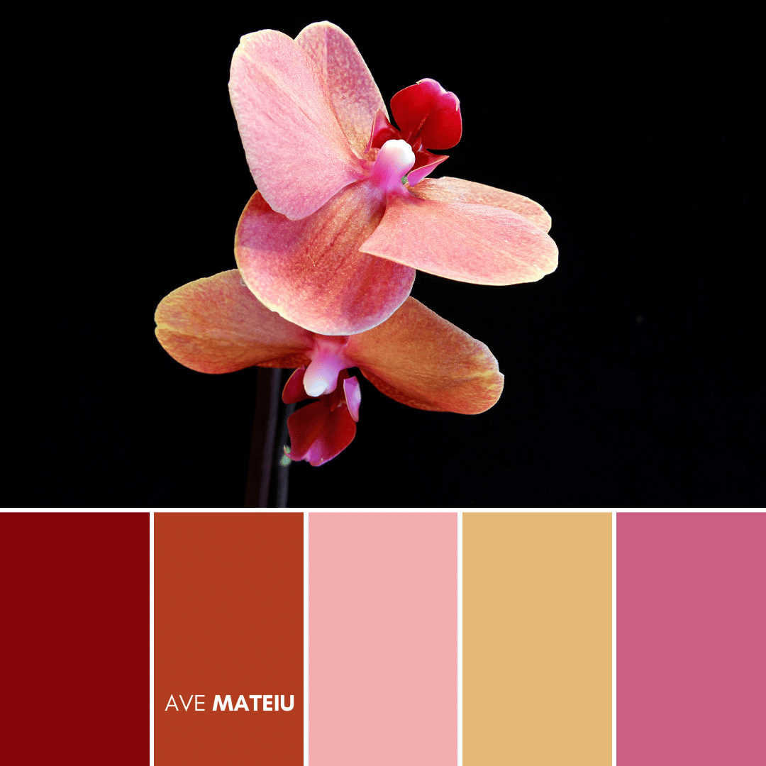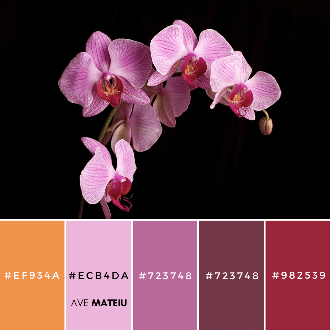Orchids are renowned for their beauty, elegance, and alluring charm. With around 28,000 known species [1], these delicate flowers come in a stunning array of colors, shapes, and patterns, presenting an extraordinary wealth of inspiration for creating these Valentine’s Day color palettes.