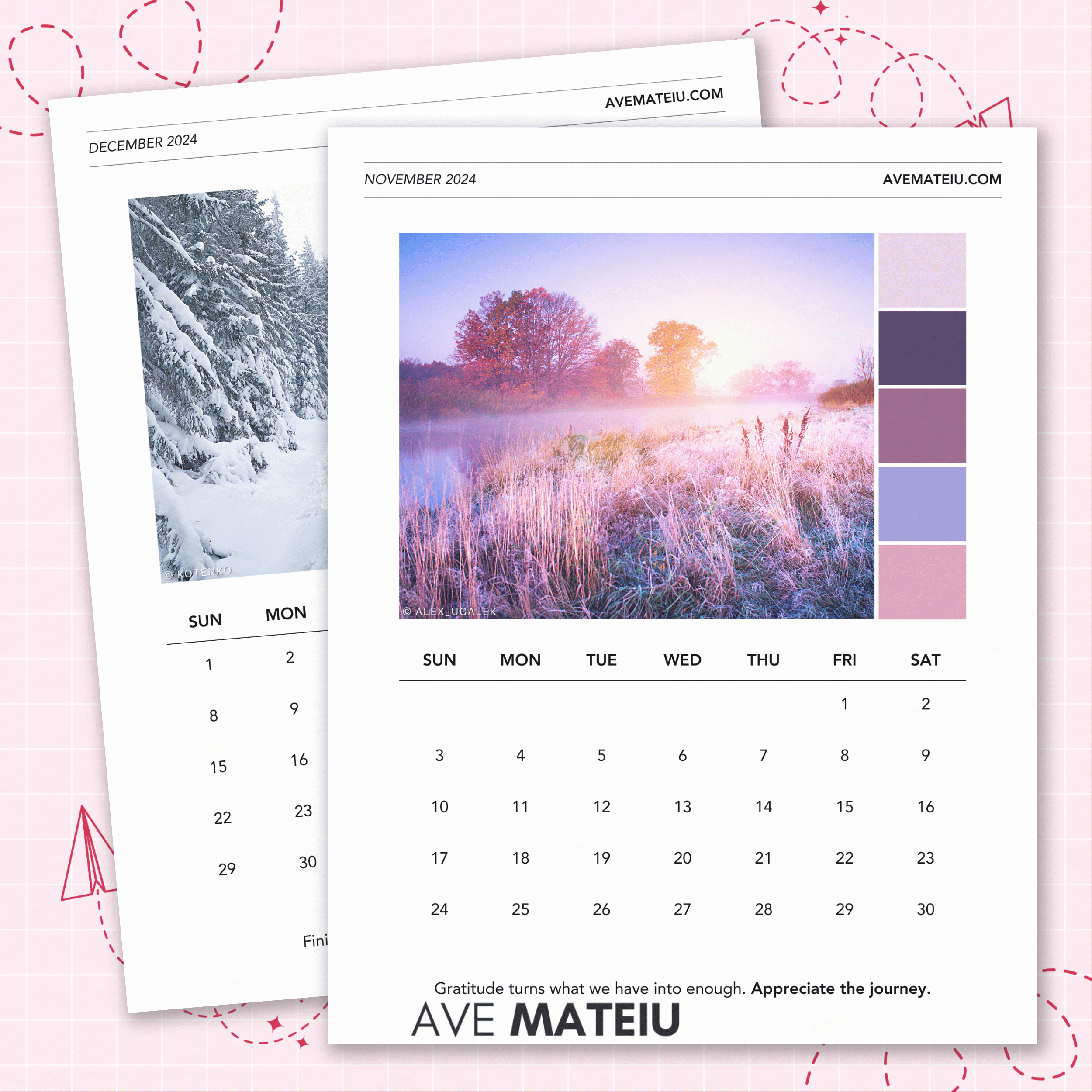 Unveil a Year of Inspiration: 2024 Monthly Calendar with Color Palettes and Motivational Quotes