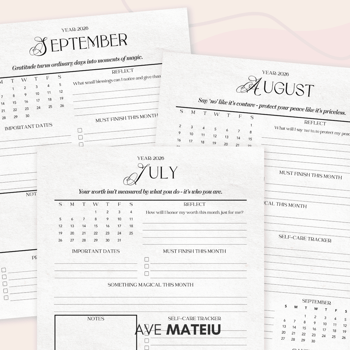 Whether you’re looking for a motivational calendar 2026, monthly planner with quotes, or a printable planner 2026, this bundle keeps you organized, inspired, and ready to make every month count.