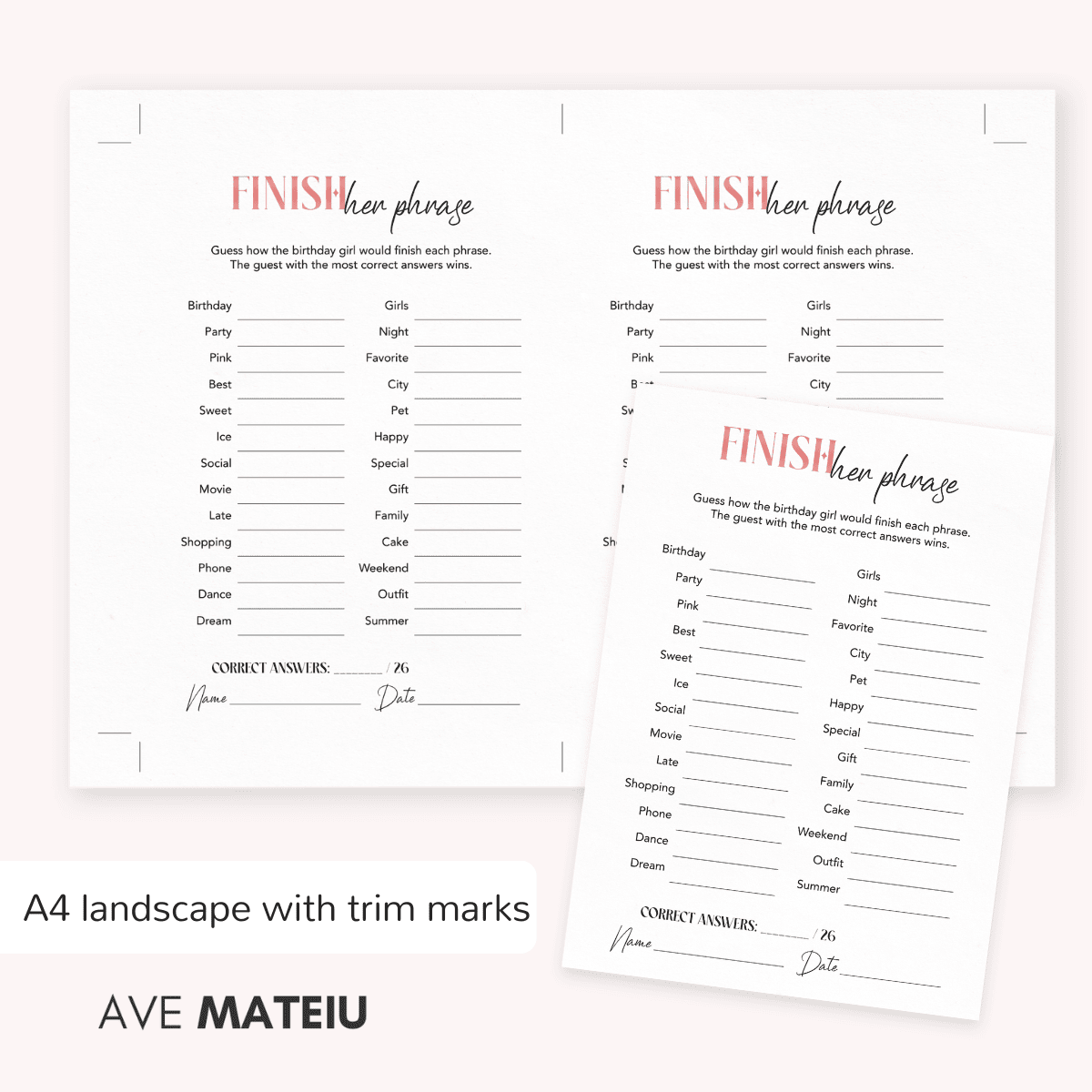 - Finish Her Phrase + Birthday Girl Answer Sheet