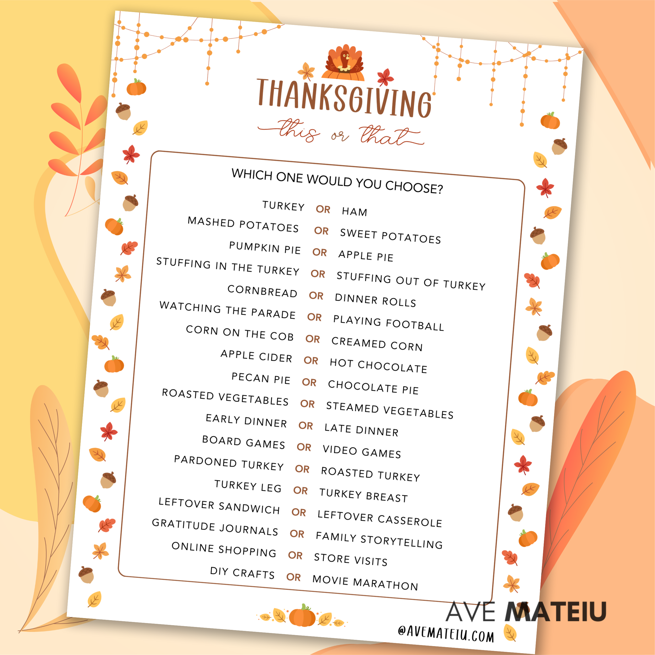 ThisΒ bundle offers a delightful array of games, from Thanksgiving Word Search and This or That to Emoji Pictionary and Family Feud. There’s something for every age group and preference: